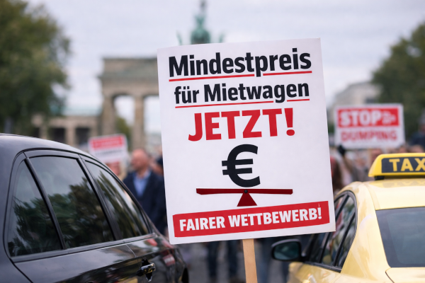 Angesichts des zunehmenden Preisdrucks im Mietwagengewerbe fordern wir die sofortige Einführung eines verbindlichen Mindestpreises für Mietwagenfahrten. Ziel ist es, fairen Wettbewerb sicherzustellen, soziale Standards zu schützen und langfristig eine verlässliche urbane Mobilität zu gewährleisten.
